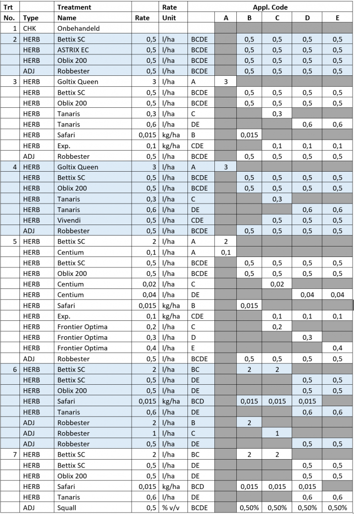 Text/HTML Actueel EasyDNNNews Herbicidenproef suikerbieten 1 augustus 2019 Afgelopen voorjaar heeft Agriant een herbicidenproef in de suikerbieten uitgevoerd. Het proefveld lag in een perceel Afgelopen voorjaar heeft Agriant een herbicidenproef in de suikerbieten uitgevoerd. Het proefveld lag in een perceel aan de Noordersloot in Erica. Het doel van deze proef was inzicht krijgen in de mogelijke schema’s die we kunnen inzetten wanneer de actieve stoffen Des- en Fenmedifam wegvallen voor de suikerbietenteelt. Deze actieve stoffen vormen tot op heden een belangrijke basis voor de onkruidbestrijding in suikerbieten. In de proef komen een aantal middelen te liggen die recent toegelaten zijn, of waarvan op korte termijn een toelating wordt verwacht. Alle objecten zijn op eenzelfde datum gespoten, om de verschillen goed te kunnen vergelijken. Dit is geen praktijk, maar voor de proef wel waardevol. Inmiddels is bekend dat de actieve stof Desmedifam niet verlengd wordt en dat we deze stof na dit jaar kwijt zijn. De uitververkooptermijn wordt eind 2019 verwacht en opgebruiktermijn medio 2020. De toelating van de actieve stof Fenmedifam is verlengd en daardoor nog een aantal jaren toegelaten, daarna wordt deze actieve stof opnieuw beoordeeld. Daarnaast is het middel ‘Tanaris’ toegelaten door het Ctgb op 27 juni jl. Dit middel bevat de actieve stoffen dimethenamid-P en quinmerac. De actieve stof dimethenamid-P kennen we als Frontier Optima, en de actieve stof quinmerac zit naast Metamitron in Goltix Queen. De herbicide die nog niet is toegelaten maar wel is toegepast in deze proef noemen we in ons verslag ‘exp’. Naast het grillige toelatingsbeleid en naderende aanvullende voorwaarden voor gebruik van gewasbeschermingsmiddelen ten aanzien van drift hebben we het proefveld gespoten met een toegelaten dop met nieuwe DRT eisen en toegestane druk. In één van de objecten is de olie (Robbester) vervangen door Squall, dit is een hechter, uitvloeier, anti-drift middel en zorgt voor een beter druppelspectrum. Hieronder kunt u het proefveld schema bekijken: In onderstaand verslag lichten we ieder object kort toe. Object 1. Dit is het onbehandelde object. De volgende onkruiden kwamen hier voornamelijk in voor: Melganzevoet, volgelmuur, perzikkruid en paarse dovenetel. Object 2. Dit object is de ‘standaard’ die in de praktijk veel toegepast wordt. Er is vier keer gespoten met de middelen Bettix, Astrix, Oblix en Robbester. In de praktijk wordt dit ook wel het ‘BOGT’ systeem genoemd. In het veld zagen we duidelijk dat dit schema niet afdoende was tegen met name melganzevoet. Er is een behoorlijk aantal overgebleven. Object 3. In dit object ligt er een bodemherbicide vóór opkomst aan de basis. In het schema na opkomst is de Fenmedifam weggelaten en is het middel Tanaris, Safari en het exp. toegevoegd. Ook in dit object zien we dat er voornamelijk melganzevoet is overgebleven. Object 4. In dit object ligt er ook een bodemherbicide vóór opkomst aan de basis. Daarnaast is weer Fenmedifam weggelaten. In dit schema zijn de middelen Tanaris en Vivendi (lontrel) toegevoegd. Ook hier zien we dat er melganzevoet over blijft. Object 5. In dit object staat het middel Centium centraal. Dit middel is hier gebruikt vóór opkomst en na opkomst. Dit object is nagenoeg schoon, maar door de Centium krijgen de bieten witverkleuring. Object 6. In dit object is de hoeveelheid Bettix (goltix) de eerste twee keer verhoogd, in combinatie met een hogere dosering olie. De eerste twee bespuitingen is hier safari aan toegevoegd, daarna is de safari vervangen door Tanaris. Het schema is niet helemaal af op melganzevoet, maar komt duidelijk verder dan schema 1, 2, 3 en 4. Object 7. Dit object is vergelijkbaar met object 6, alleen de Robbester (olie) is vervangen door Squall (uitvloeier+hechter). Hier zien we dat dit schema niet onder doet aan object 6, terwijl Squall een andere werking heeft dan olie.